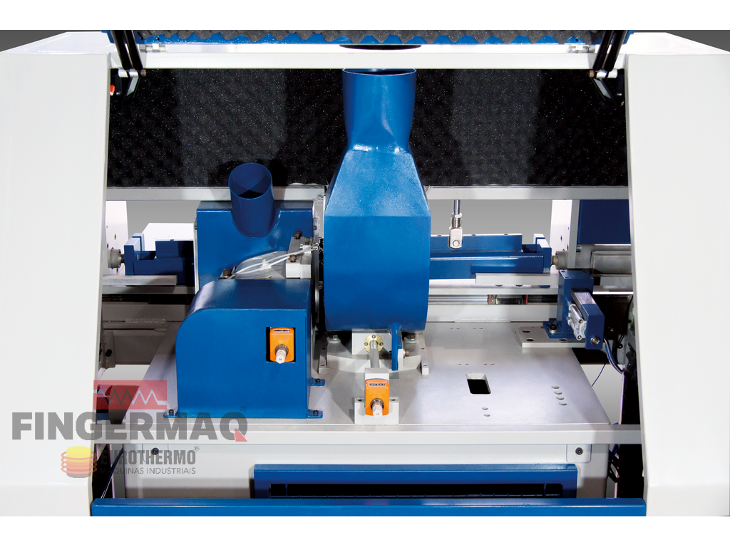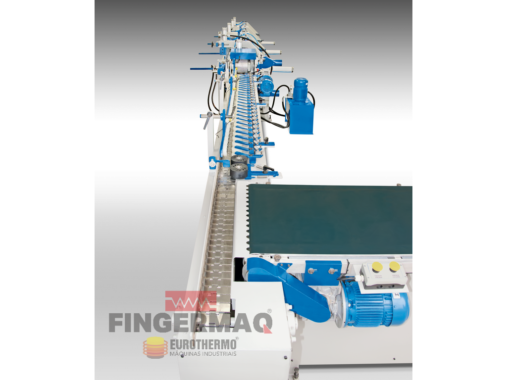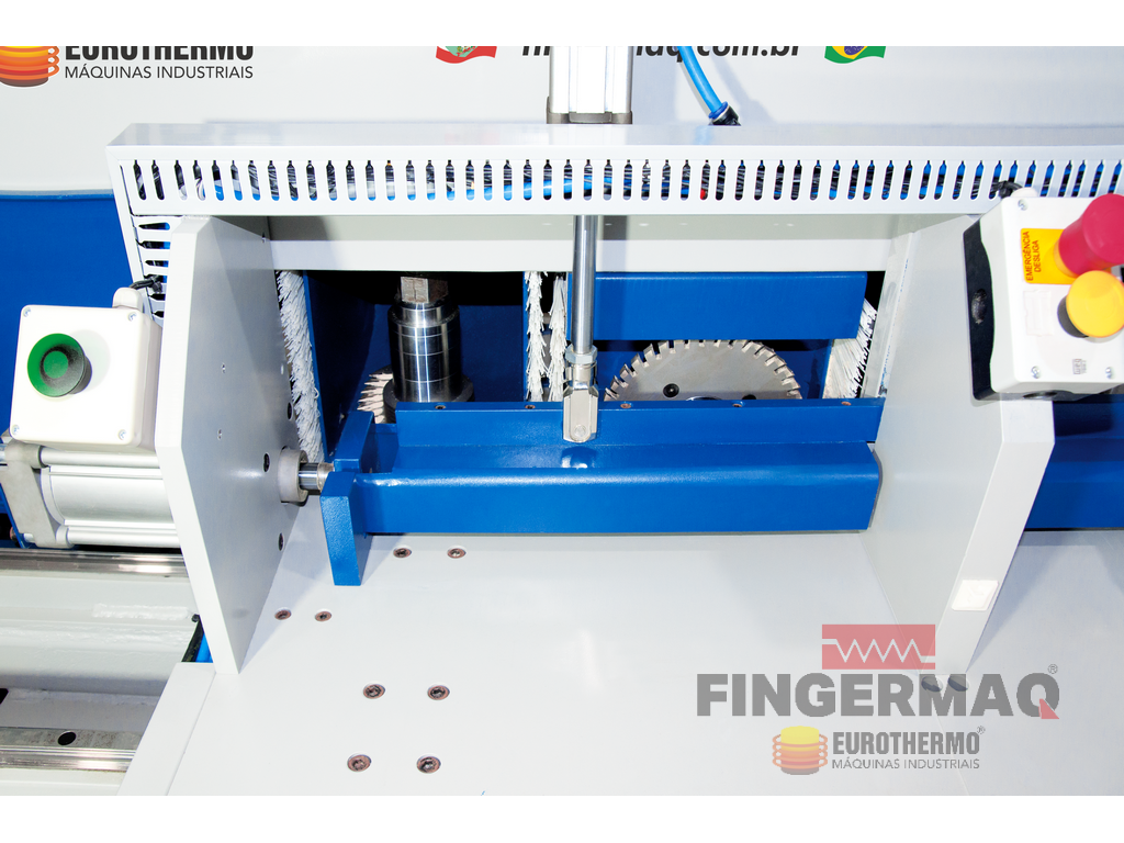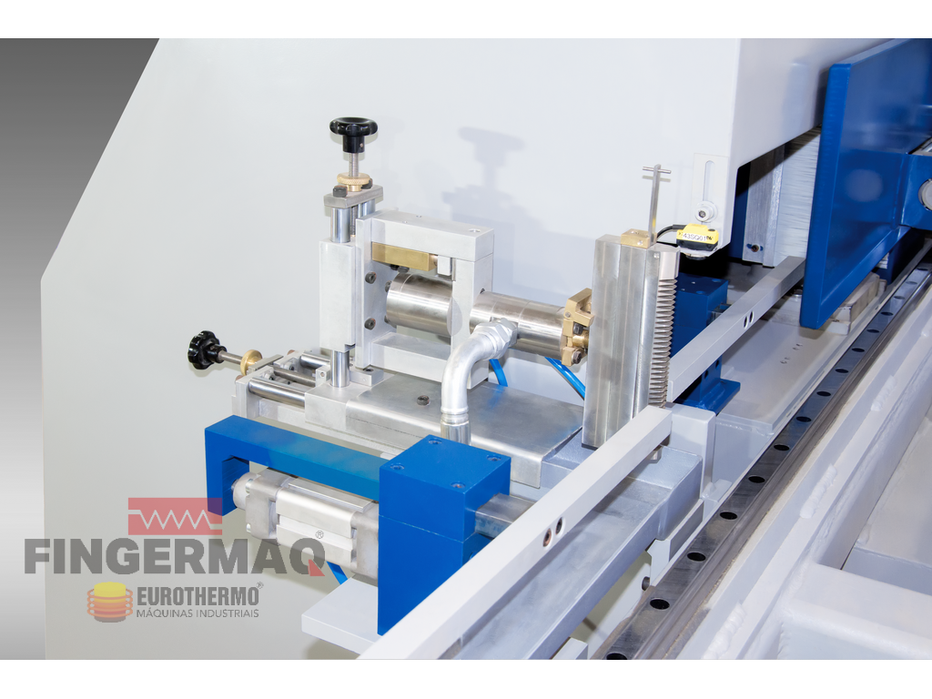 Vista Frontal Sistema Fresamento com Gaveta Dupla e Conjunto Aplicador de Cola tipo Injetor.